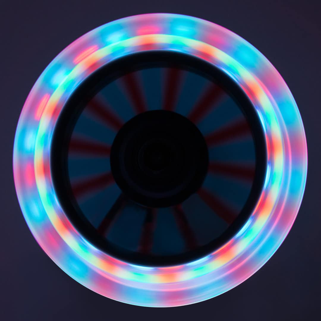 Um den Scooter individuell anzupassen, lässt sich die Lenkerhöhe schnell und einfach verstellen. Durch die Klappfunktion ist der Scooter zudem einfach zu transportieren. Abgerundet wird das Design durch die Leuchtrollen und verspricht somit noch mehr Spaß. Diese funktionieren nach dem Dynamoprinzip und benötigen keine Batterien.
