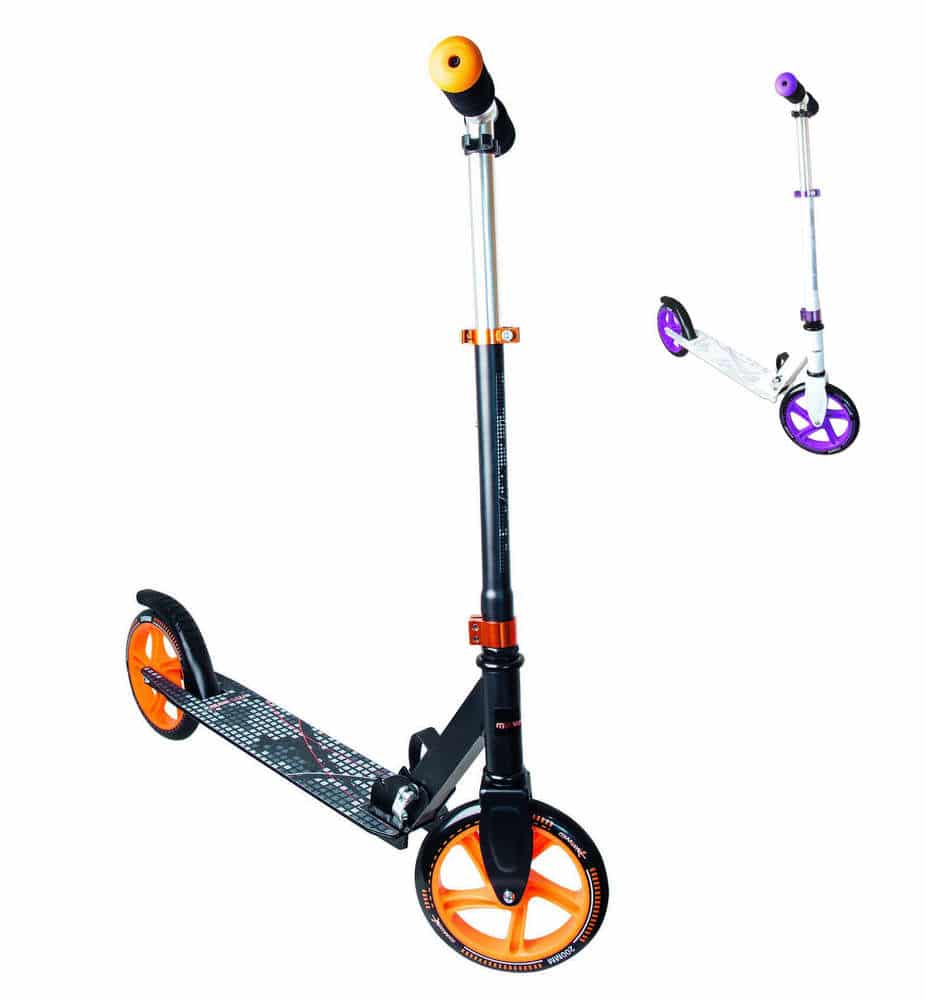 Der Aluminium Scooter Muuwmi 200 besticht nicht nur durch seine hochwertige Aluminium Verarbeitung, sondern auch durch die verstärkte Vorderradgabel. Diese verleiht dem Scooter zusätzliche Stabilität. Sicheres Fahrvergnügen garantieren eine große Trittfläche und ein Anti-Slip Bremspedal. Durch den höhenverstellbaren Lenker wächst der Scooter mit dem Fahrer und durch die Klappfunktion zudem einfach zu transportieren. Ein stylisches Design macht das Fahrerlebnis rundum perfekt.