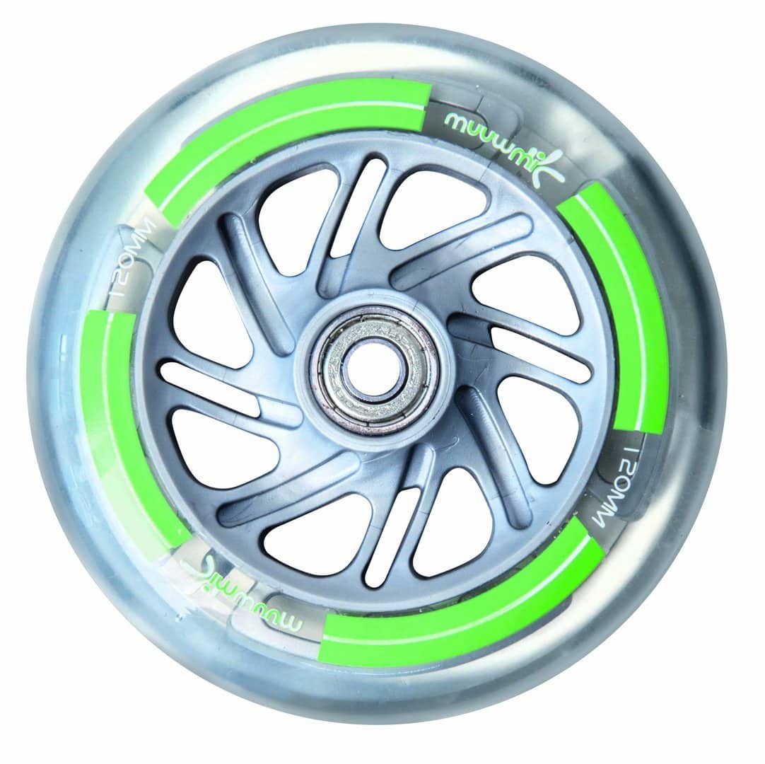 Leuchtrolle 120mm inkl. ABEC-5 Kugellager passend für den Kidsscooter UP Muuwmi. Dynamoprinzip = keine Batterien notwendig. Kann bei normalen 120mm/125mm Scootern ohne Leuchtrollen einfach nachgerüstet werden (nur Austauschen)